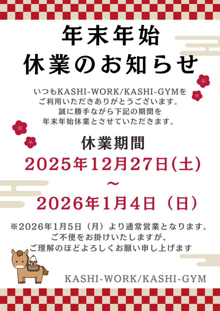 誠に勝手ではございますがKASHI-WORK・KASHI-GYMは